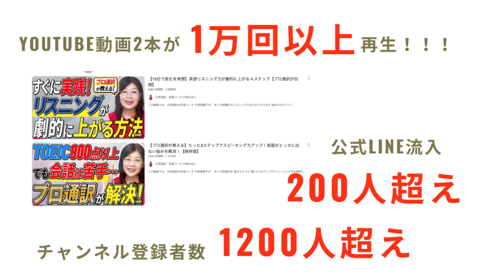YouTube動画も1本作り、公開したところ、視聴回数は3000回ほどなのに、公式LINEに毎日流入。3ヶ月で530リストまで増えました。